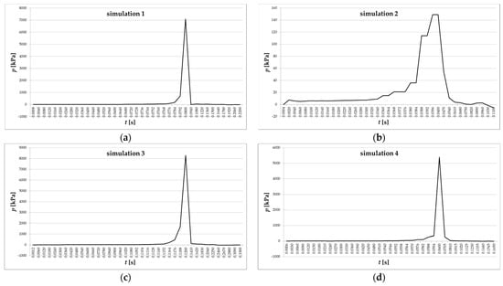 Pressure time trends for scenario 1, 2, 3 and 4, respectively (a–d).