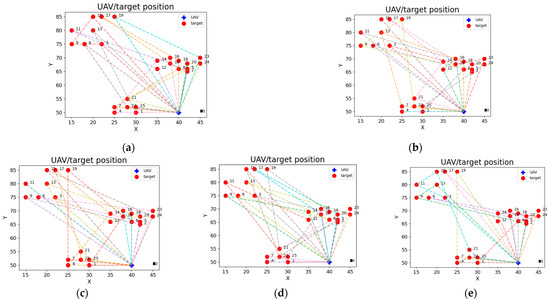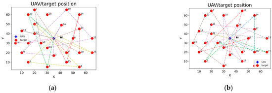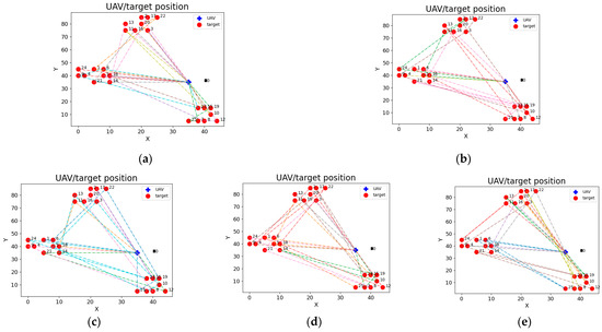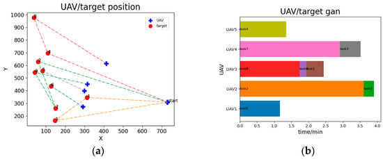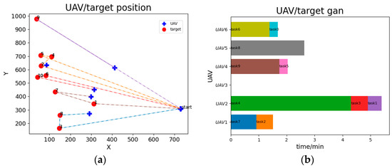 The UAV redistribution problem can be abstracted into a centralized allocation scheme for heterogeneous UAVs with a time window and a distributed local task re-scheduling scheme by the redistribution scheme proposed in this paper. The following experiments can validate the effectiveness of this paper’s redistribution models and algorithms in solving the redistribution problem. This work selects task point addition and anomalous UAV damage as unexpected circumstances.