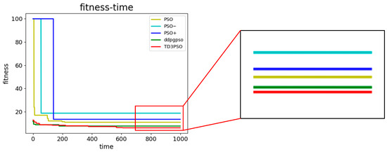 Based on the information in Table 14, the distance, material requirements, flight risk, time, and task balance data for each plan are calculated as follows, The experimental results show that the TD3PSO algorithm in real scenarios obtained the following results: the shortest distance is 7578.1174, the task is entirely distributed, the flight risk is slightly higher compared to the PSO algorithm, and the RLPSO algorithm is 3.3847—the least amount of time consumed for the 7.7078, which can be found in the case of the integrated objective function, and thus the algorithms of this paper can be effective in solving the real-world scenarios.