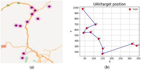How to perform fast drone flight trajectory assignment is one of the keys to solving the problem. The Vehicle Routing Problem of Drones (VRPD), a variation of the Vehicle Path Problem (VRP), has been researched by researchers. In the classic VRPD problem, Different needs and the actual situation can determine the objective function, such as the shortest transport delivery time of the material [4,5,6] and the time window constraints [6]. However, many of the current studies are poorly targeted, abstracted only to conventional material transport problems, ignoring the distinctions between various transport problems and the dynamics of the problem, which would be more pertinent if the target point’s characteristics were taken into account in the text.