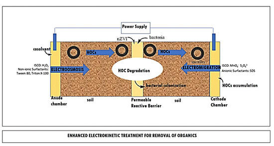 - Cameselle, C.; Gouveia, S. Electrokinetic remediation for the removal of organic contaminants in soils. Curr. Opin. Electrochem. 2018, 11, 41–47. [Google Scholar] [CrossRef]
