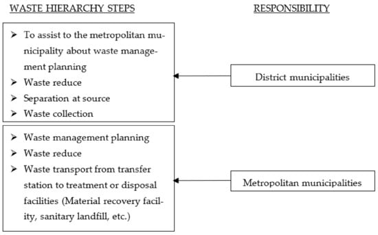 As shown in Figure 1, while district municipalities have obligations as part of sustainable waste management practices under certain regulations, metropolitan municipalities also have obligations to manage waste disposal processes starting from waste transfer stations. One of the aims of this article is to assist Beşiktaş District Municipality, one of the district municipalities, in the sustainable waste management system in its surrounding areas, thus encouraging the metropolitan municipality to make the greatest contribution to the waste management process.