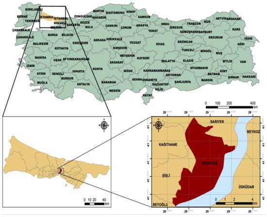 Beşiktaş district is one of the 39 districts of Istanbul that contributes to the integrated waste management system. Despite its resident population of 175,190 [91], it is frequented by over 2 million people during the day. Within the scope of the zero waste management system, Beşiktaş district also contributes to the integrated waste management system of the Istanbul metropolitan municipality, as do the other 38 districts. The collection of waste and its transportation to the transfer station are among the duties of the Beşiktaş Municipality, as is the case for all district municipalities.