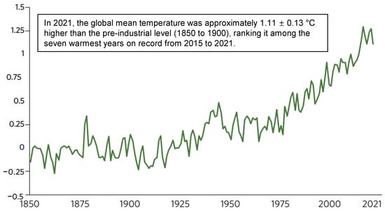 - WMO. World Meteorological Organization—2022 State of the Global Climate Report. Available online: https://public.wmo.int/en/our-mandate/climate/wmo-statement-state-of-global-climate (accessed on 11 August 2023).