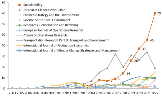 | Source Title | Journal of Cleaner Production; Sustainability; Business Strategy and the Environment; Science of the Total Environment; Resources, Conservation and Recycling; European Journal of Operational Research; Transportation Research Part D: Transport and Environment; Annals of Operations Research; International Journal of Climate Change Strategies and Management; International Journal of Production Economics |