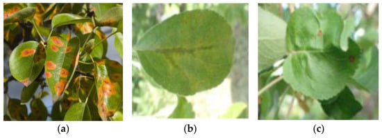 - CS Celes. Machine Learning for Diagnosis of Foliar Diseases in Apple Trees. Rio de Janeiro, 2022. 28p. Final Project–Department of Informatics, Pontifical Catholic University of Rio de Janeiro. Available online: https://www.maxwell.vrac.puc-rio.br/61365/61365.PDF (accessed on 8 August 2023).