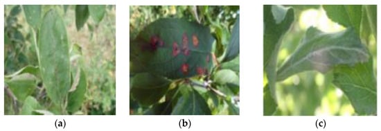 Figure 10 shows the misclassification results on different apple foliar disease classes. It can be seen from Figure 10a that the Actual class is “complex” and the Predicted class is “scab”; Figure 10b shows the Actual class as “rust” and the Predicted class as “scab” and Figure 10c shows the Actual class as “powdery_mildew” and the Predicted class as “frog_eye_leaf_spot”. The proper management of pomace complements the concept of sustainable agriculture as a means of reducing environmental damage.