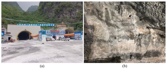 (a) Bailongtan tunnel and (b) layered rock formation at the tunnel working face.
