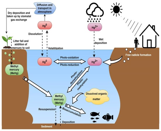 - Zhou, J.; Obrist, D.; Dastoor, A.; Jiskra, M.; Ryjkov, A. Environment, Vegetation uptake of mercury and impacts on global cycling. Nat. Rev. Earth Environ. 2021, 2, 269–284. [Google Scholar] [CrossRef]