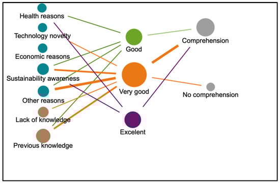 The health condition does not seem to have much influence on comprehension level (Figure 5). Most of the group has a very positive assessment of their health condition, as most participants assessed their health as “very good”, with a small few assessing it as “good” and “excellent”. They have multiple motivations, of which sustainability awareness stands out, and some previous knowledge. Almost all of them reached the comprehension level.