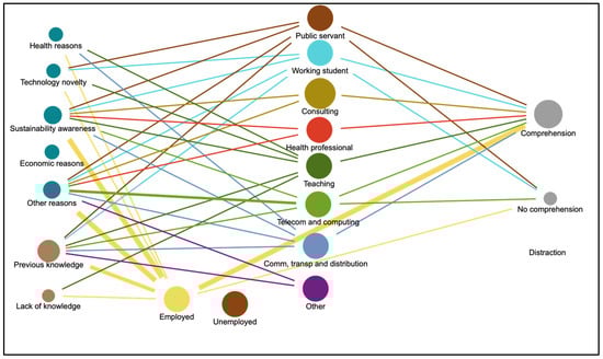 The types of professions also do not seem to have much influence on participants’ level of comprehension (Figure 7). Most participants achieve a decent level of comprehension of the set-ups and the objectives of the program regardless of the types of profession, although being employed can influence comprehension. Most participants entered the program driven by their sustainability awareness and some other reasons, and most of them have some previous sustainable mobility knowledge.