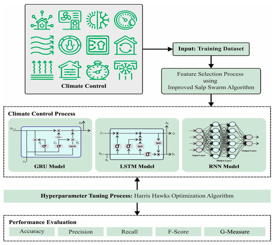 For climate control process, the proposed model performs ensemble learning process comprising three DL models, namely RNN, LSTM, and GRU [28].