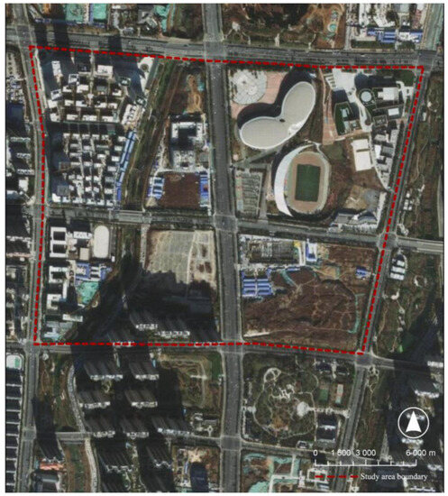 The coarse-grained study area was selected from Jinan Tangye New District, located on the rapid development axis of Jinan to the east and belonging to the construction area of demolition planning, with large-scale integration and construction between 2005 and 2015 [53]. The parcels of land are large and scattered. The boundaries of the study area are shown in Figure 4.