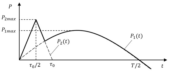 where is the pulsating component and is the impulsive component in Goda’s formula. Figure 3 shows the time history of . They are expressed mathematically as:
