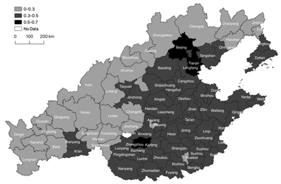 | Low–low | Jincheng, Yuncheng, Linfen, Xianyang, Yan’an, Yulin, Tianshui, Pingliang, Qingyang, Dingxi, Longnan, Guyuan | Jincheng, Yuncheng, Linfen, Yan’an, Yulin, Tianshui, Pingliang, Qingyang, Dingxi, Longnan, Guyuan |
