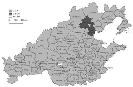 | High–high | Tianjin, Cangzhou, Langfang, Yantai, Weifang, Tai’an, Linyi | Tianjin, Langfang, Yantai, Weifang |