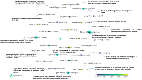 In light of the considerable growth in LCA-related publications as presented in Figure 2, a comprehensive bibliometric analysis was conducted by a number of authors [39,40,41,42,43,44,45,46] to identify primary and emerging themes and to map LCA research trends and related contexts, including the characteristics of LCA publications, subject areas, co-authorship, collaboration, co-citations, journals, affiliations, keywords co-occurrence, and research focus.
