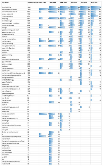 The screened indexed keywords should be employed as a search string within the title OR Abstracts AND Author keywords OR indexed keywords, depending on the research objectives, Boolean operators, location, research subjects, languages, type of documents, and search span. It is advisable to establish the research span between N − 1 and N + 1 if N represents the search year (period). Authors of LCA studies must enhance the indexing of their papers and signatures to aid in creating a more precise mapping of worldwide LCA research and enhance the dissemination and communication of their work [47].