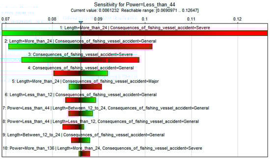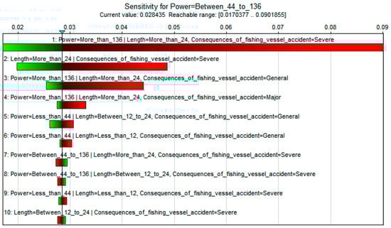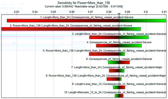 To examine the comprehensive impact of multiple influencing factors on fishing accidents and confirm the accuracy of the BN model, the sensitivity analysis inference process should satisfy at least two hypotheses during the following axioms []: