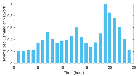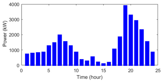 Figure 9 shows the amount of energy purchased by the installed hybrid system from the main network. During the photovoltaic energy period, the amount of electricity required from the upstream network has decreased significantly. The base system’s loss and associated cost are 1061 kW and 55.86 $ per day, respectively. When the hybrid system is installed in the network, these values decrease to 956.79 kW and 51.78 dollars per day.