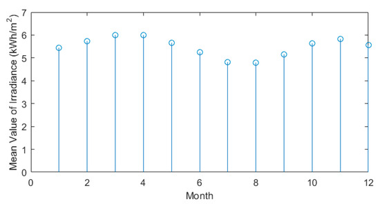 A photovoltaic panel has expenses associated with it, such as installation cost (), maintenance cost (), and replacement cost (). The cost of purchasing various kinds of equipment is determined based on their quantity and is performed just once. When it comes to maintenance charges, the cost is expressed as a monetary amount every year. In other words, the expenditures that were computed are yearly. As a result, the total costs () associated with photovoltaic panels are considered as follows [1,5,28,42]: