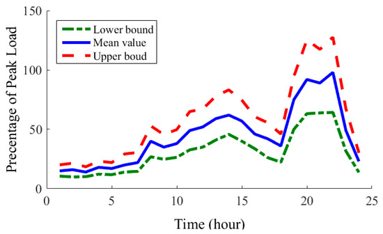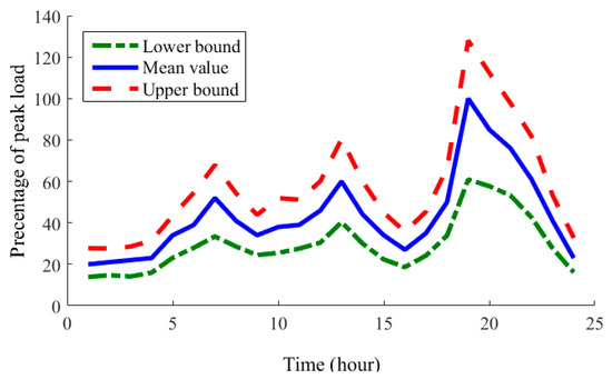 Upper limit, lower limit, and mean load of the distribution network.