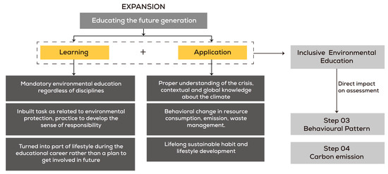 According to UNEP, only a synchronized approach to combining global, regional, national, and local levels of action plans can mitigate environmental exploitation and ensure a sustainable future [5]. Among all the other public and private subsystems, HEIs resemble the multidimensional activity of a city interacting with different subsystems: education, administration, transport, housing, health, and food [34]. They have often been marked as a “small-scale city model” by numerous researchers [35]. Taking all that into account, HEI campuses have become a beacon of hope for change. Along with its scalable infrastructure, a zero-carbon campus can take the lead and pave the way for practicing, promoting, and demonstrating the transition to a zero-carbon city.