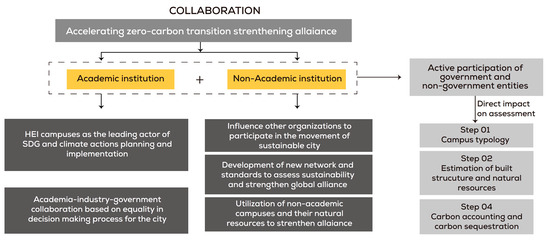 Following the transition of the global- to urban-scale narrative of climate actions, it is essential to address the potential of HEIs’ operational and functional activities in terms of hampering urban sustainability. In addition, it is also necessary to evaluate the scalability of sustainable practices to accelerate the zero-carbon transition at the city scale.