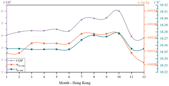 Optimized export temperature and humidity and COP applied in Hong Kong.