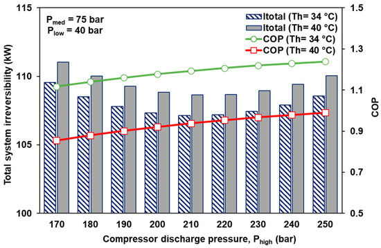 - Thus, there should be a tradeoff between the system COP and total irreversibility in order to fix the bleed mass.