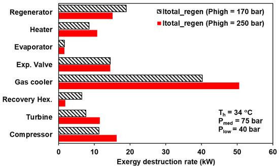 - The gas cooler contributes 37% to overall system irreversibility, followed by the regenerator (about 17%).