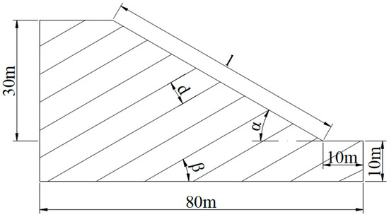 Slope model. d: joint thickness; α: slope angle; β: joint inclination angle; l: slope length.