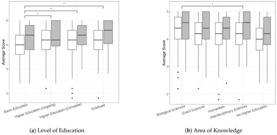 | • Area of knowledge–higher education only (Exact Sciences, Humanities, Biological Sciences, Interdisciplinary Sciences, no Higher Education) |