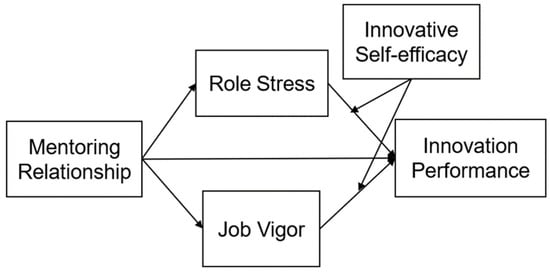 Drawing from the above analysis, this study formulates a theoretical model comprising five variables: mentoring relationships, role stress, job vigor, innovative self-efficacy, and innovation performance, as depicted in Figure 1.