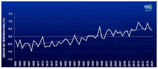 Temperature anomalies of average air temperature in Brazil per year [19].