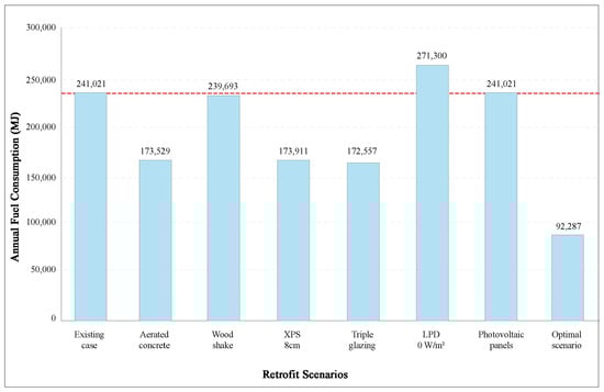 Annual fuel consumption of retrofit scenarios.