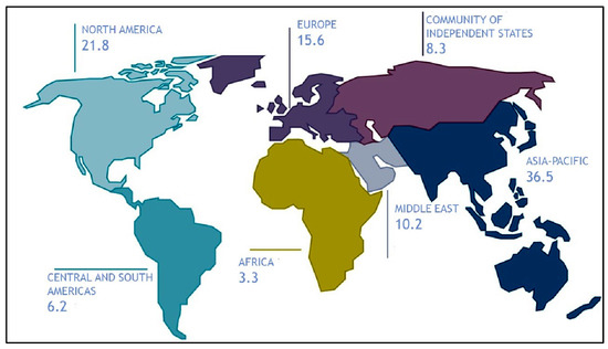 According to data from the National Agency of Petroleum, Natural Gas and Biofuels (ANP), in 2020 Brazil was the highest-ranking oil producer in South America. The proven reserve of oil in the world reached the mark of 1.7 trillion barrels in 2020, with Brazil having a proven reserve of 11.9 billion barrels in that year. The Brazilian refining capacity represents 2.3% of the world capacity, with South America representing 6.2% of this total, as illustrated in Figure 1: