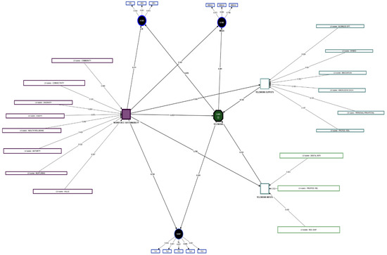 The choice behind SmartPLS (v.4.0.0) software resides within the fact that the provided results offer a better and more advanced understanding of the existing relations among the considered variables. SmartPLS (v.4.0.0) software is reliable in cases when the proposed model comprises one or more formative constructs, thus enforcing the partial least squares algorithm, which results in two models: the first model (as the inner model) is related to the observed variable bindings that are being yielded to the latent variables [120,121]; the second model (as the outer model) resides within the proposed model structural assessment in regard to different latent variables.