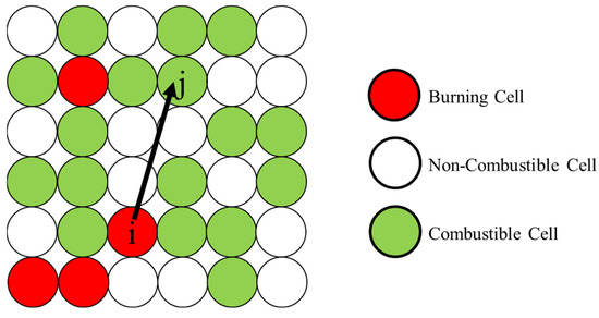 | dij | Distance from the burning cell i to combustible cell j |