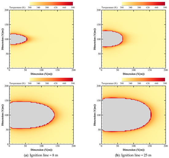 | Item | Ignition Line (m) | Time (s) | ROS (WFDS) (m/s) | ROS (Current Study) (m/s) | ROS Difference (%) | Fire Perimeter (WFDS) (m) | Fire Perimeter (Current Study) (m) | Fire Perimeter Difference (%) |