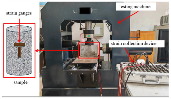 The YZW100 multifunctional rock direct shear instrument at Central South University was utilized as the loading equipment, with a maximum working pressure of 500 kN, as shown in Figure 2. The mechanical test was divided into two groups: a conventional uniaxial compression test and a constant lower limit cyclic loading and unloading test. Each group of tests included three samples. The loading method for the tests was as follows.