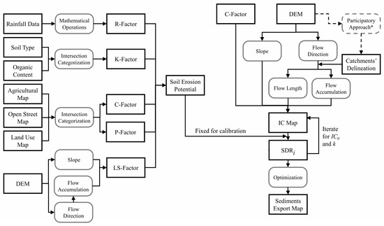 - Naipal, V.; Reick, C.; Pongratz, J.; Van Oost, K. Improving the global applicability of the RUSLE model—Adjustment of the topographical and rainfall erosivity factors. Geosci. Model Dev. 2015, 8, 2893–2913. [Google Scholar] [CrossRef]