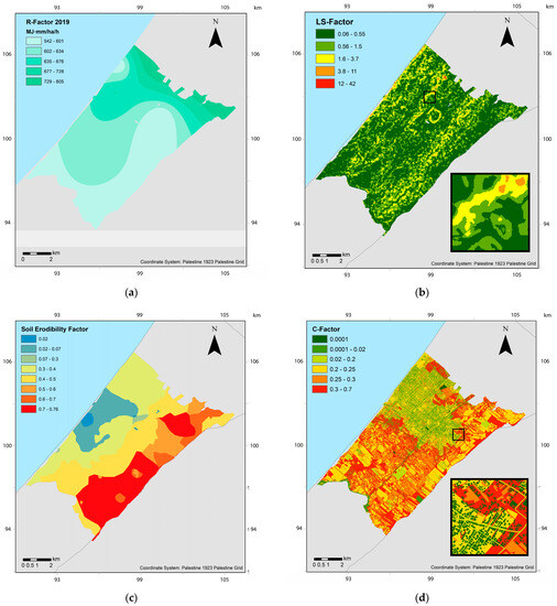 - Renard, K.G.; Foster, G.R.; Weesies, G.A.; McCool, D.K.; Yoder, D.C. (Eds.) Predicting soil erosion by water: A guide to conservation planning with the revised universal soil loss equation (RUSLE). In Agriculture Handbook, No. 703; US Department of Agriculture, Agricultural Research Service: Washington, DC, USA, 1997. [Google Scholar]