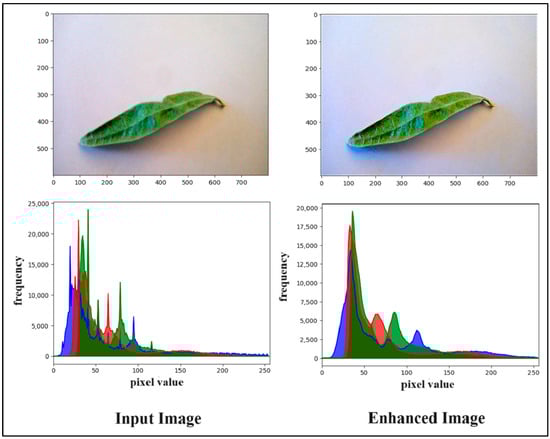 According to the olive images, olive leaves have three types: the first type has natural leaves with green and a flat surface, while the remaining two categories have either color spots or irregularities in the leaf’s surface and fade in color. Therefore, the improvement we proposed in the image increases the contrast, which can help better distinguish between these different types of leaves.