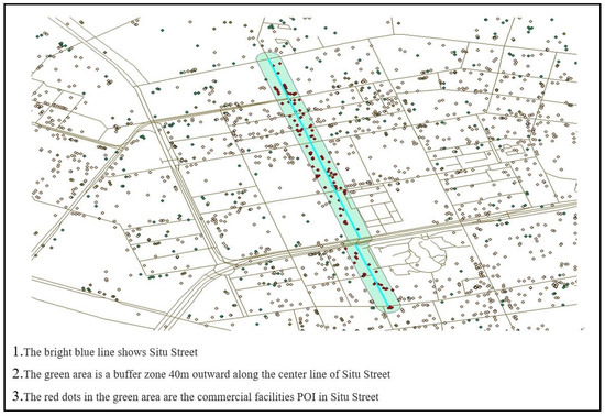 Schematic diagram of Situ Street buffer zone and commercial facilities POI.