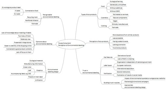 A mind map for topics and categories related to environmental labelling perception by young consumers.