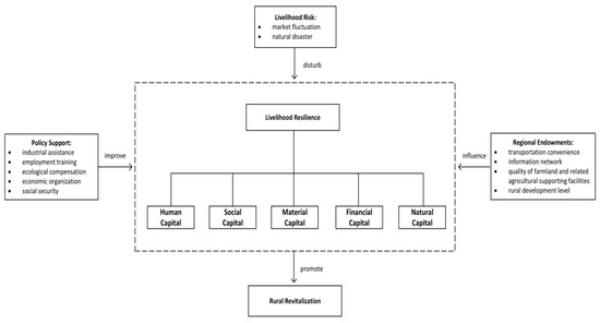 With the general victory in the struggle against poverty, the execution of the rural revitalization plan is the focus of worldwide attention in order to boost the sustainable development of the countryside [1]. National leaders have repeatedly stressed that the comprehensive implementation of the rural revitalization strategy is of great significance to China’s modernization drive and social development. China attaches great importance to rural vitalization and has issued a series of important opinions and major plans on the implementation of the rural vitalization strategy, thus making solid progress in rural vitalization. The general requirements of the village revitalization strategy are “ecological livable, civilized village customs, thriving industry, effective governance and rich life” [2]. The primary objective of rural regeneration is to achieve shared prosperity. Increasing the people’s capital for livelihood and strengthening their ability to resist poverty via livelihood is a crucial objective in the rural revitalization process [3]. The aim is to prevent people lifted out of poverty from returning to poverty and to ensure the stability and sustainability of their livelihoods.