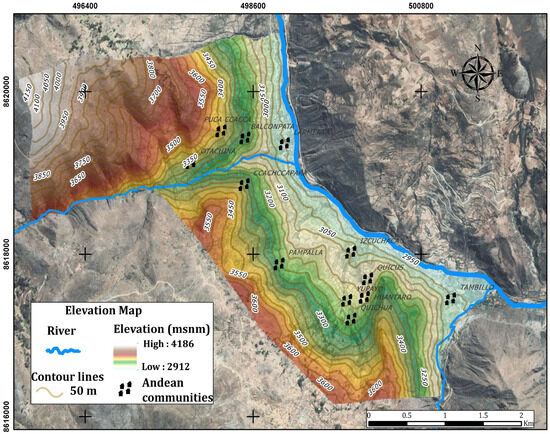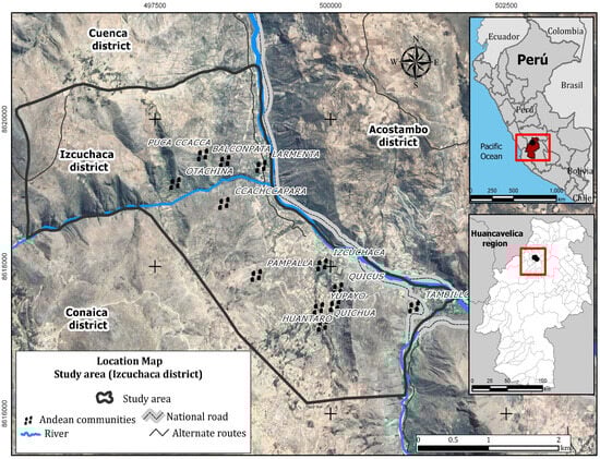 - Quispe, E. Aspectos Socio-Culturales del Proceso de Urbanización en el Poblado de Izcuchaca. Bachelor’s Thesis, Universidad Nacional de San Antonio de Abad del Cuzco, Cuzco, Peru, 2020. [Google Scholar]