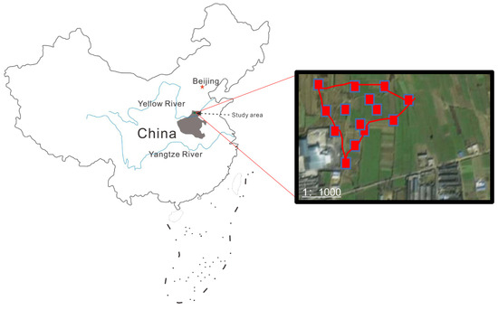 The specific study site selected for this research is located in the southern region of the Henan coal mining area. The mine was established at the end of 1994, started trial production in October 2000, and underwent inspection in February 2002 for full operation. It specializes in the extraction of anthracite coal and bituminous coal using an underground longwall mining method. The targeted coal seam originates from the Permian Shanxi Formation. The dip angle of the coal seam is 31.5° to 45°, with an average of 35°. The average thickness of the coal seam measures 7.09 m. The location of the study area is shown in Figure 1. The pilot revegetation project was initiated in 2014, and substantial growth in the planted vegetation has been observed over the subsequent years.