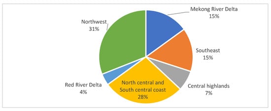 Goat production mostly is raised in some provinces in each region (Figure 3), for example in the Northern region: Ha Giang, Nghe An, Son La, and Thanh Hoa provinces; while in the Southern region goats are raised in the following: Ninh Thuan, Dong Nai, Ben Tre, and Gia Lai. Goat production is suitable for the smallholders in the mid- and highland areas, as it can improve the livelihoods for local people [8,9].